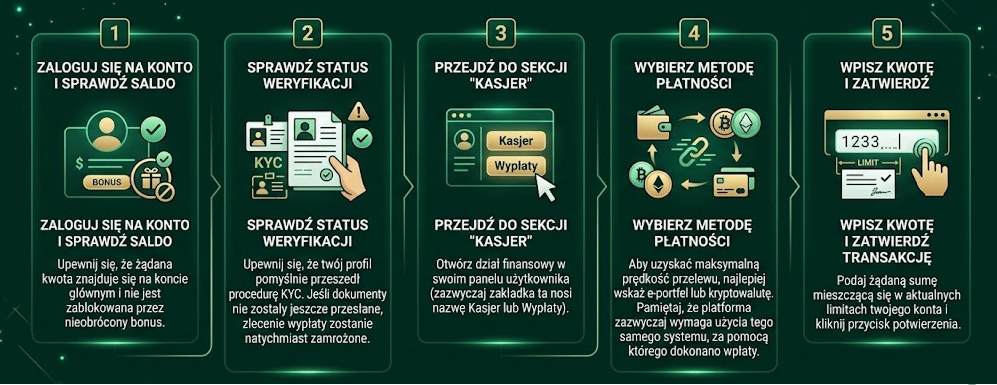 Abyś mógł odbierać swoje wygrane bez nerwów, nasz ekspert Michał Włodarczyk osobiście przetestował dziesiątki platform, dokonując depozytów i zlecając wypłaty. Poniżej szczegółowo wyjaśniamy, jak działają zautomatyzowane kasy, które metody płatności są najszybsze i jak skutecznie uniknąć opóźnień.